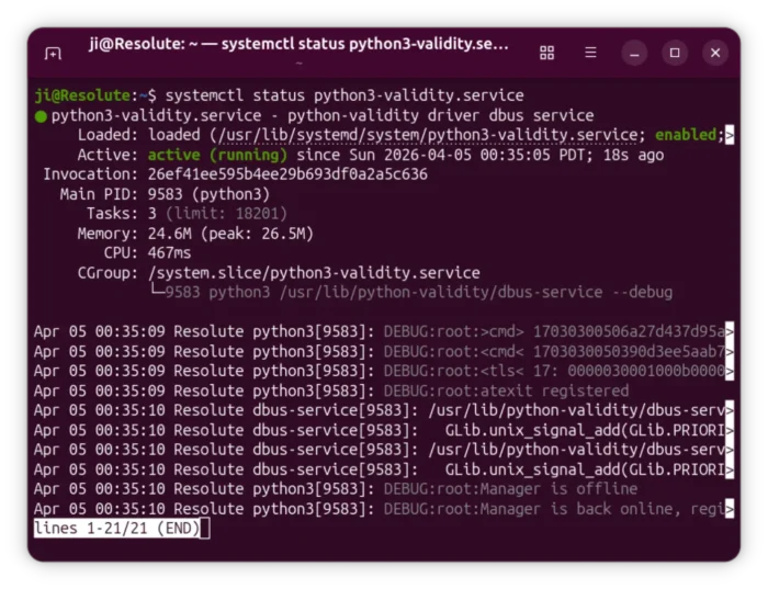 Loaded: loaded (/usr/lib/systemd/system/python3-validity.service; enabled; preset: enabled)