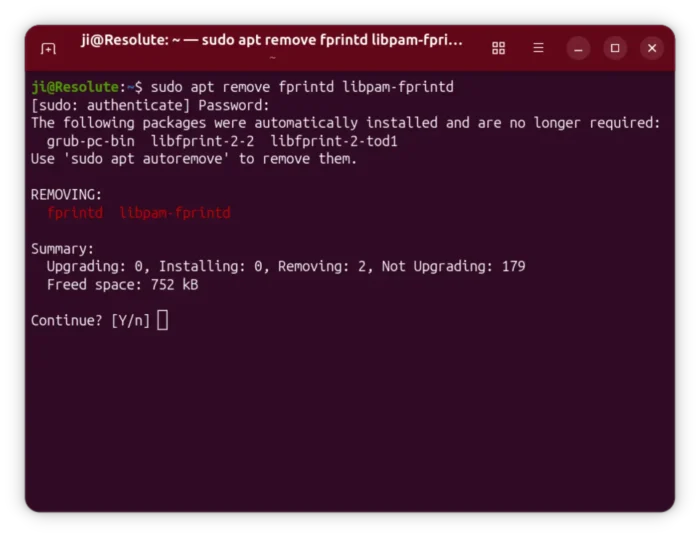 sudo apt remove --autoremove open-fprintd fprintd-clients python3-validity