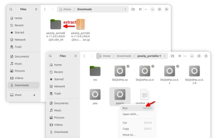 Then, decompress the tarball, and navigate to the extracted folder, finally click run “peazip” file to launch the archive manager.