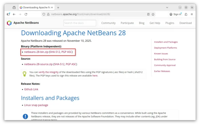 This tutorial shows how to install the most recent Apache NetBeans IDE (version 28 updated) in Ubuntu 22.04, Ubuntu 24.04, Ubuntu 25.10, and Debian 12 / 13, and their based systems, such as Linux Mint 22/21.