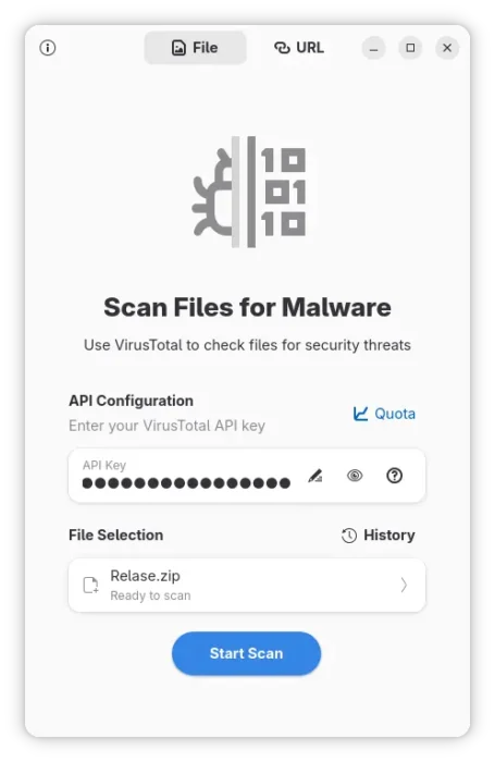 NOTE that the app will send your file to VirusTotal, DON’T use it for scanning sensitive data.