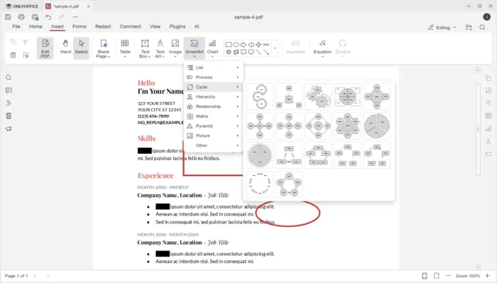 And in “Insert” tab, it added new SmartArt and Chart option, allowing to insert many new objects into your PDF.