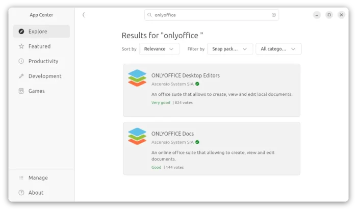 For Ubuntu user, the office suite is easy to install by using App Center (or Snap Store). It’s Snap package that runs in sandbox environment. And, at the moment of writing, it’s still at version 9.0.x.