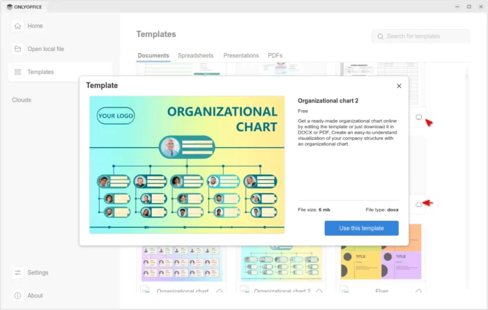 Clicking on a cloud template no longer open it directly in editor, instead it shows a popup with bigger preview with description as well as file type and size, making clearer whether it’s what you want before downloading it.