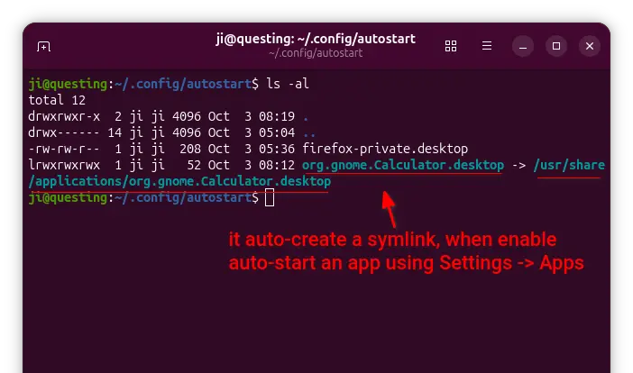 And, when you turn on “Autostart” toggle switch for an application in Settings (Gnome Control Center), it will automatically create a file under .config/autostart