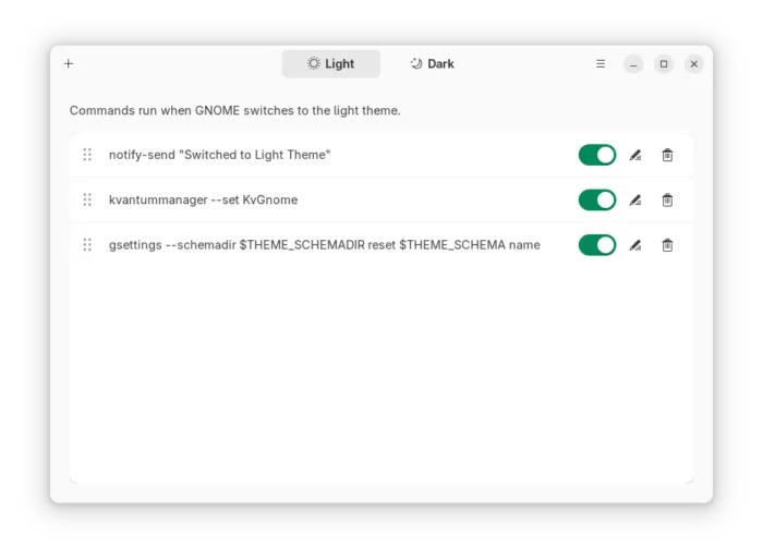 Want to do some actions automatically when you switch desktop theme to light or dark style? Here’s a new application can do the job for GNOME Desktop.