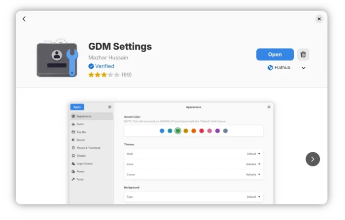 Besides that, it also updated to GNOME 49 platform for the Flatpak package. For more about the development of GDM Settings, see the commits page.