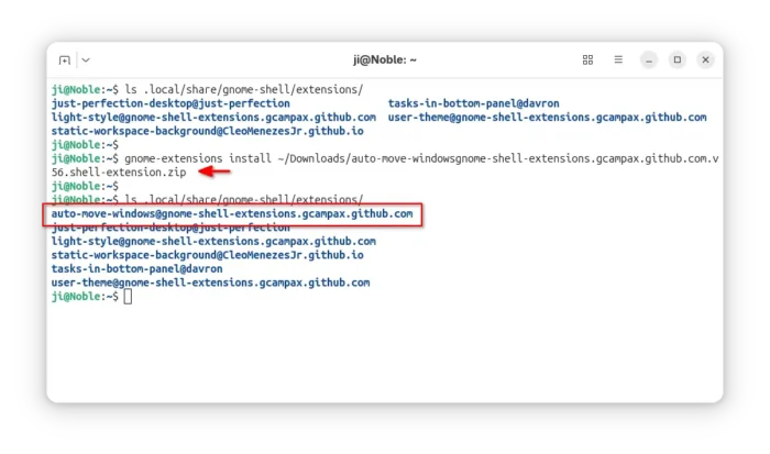 The command do the job decompressing the ZIP archive (.tar.xz, .tar.gz etc also supported) and moving the source to the user’s extension directory mentioned above.