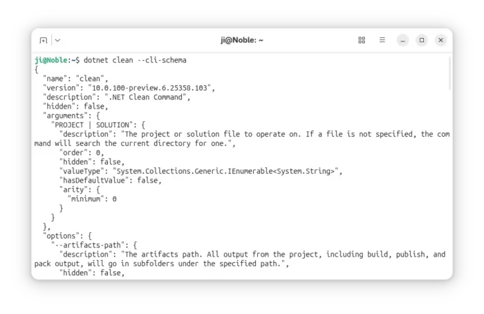User can now use the dotnet tool exec command to execute a .NET tool without installing it globally or locally. And, a new --cli-schema option is added for all CLI commands, which outputs a JSON representation of the CLI command tree for the invoked command or subcommand.