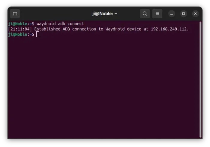 Since the release, ADB will no longer auto-connect on session start. To install apps from Linux host, transfer files, debugging, or run shell commands, user needs to first run waydroid adb connect command manually to connect ADB, and provide authorization on the Android side.