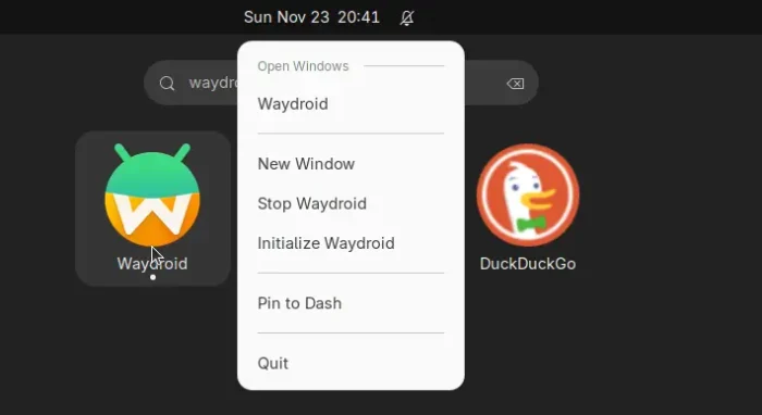 According to the release note, Waydroid 1.6.0 now will always show the main launcher after enabling multi-windows mode. And, it shows “Stop Waydroid” and “Initialize Waydroid” options when you right-clicking on main app icon, which can be useful to restart session or switch Android OS type to either minimal or with Google Services/Gapps.