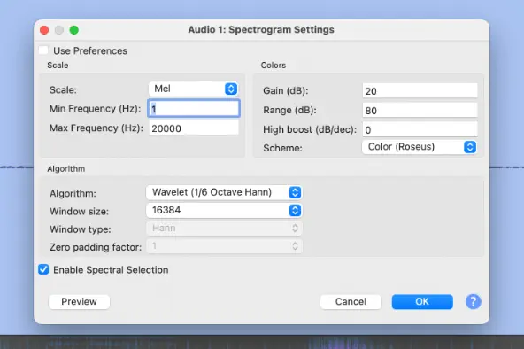 The new feature should add a “Wavelet (1/6 Octave Hann)” algorithm mode into the Spectorgram Settings dialog. However, I cannot see it in my case in Ubuntu 24.04.