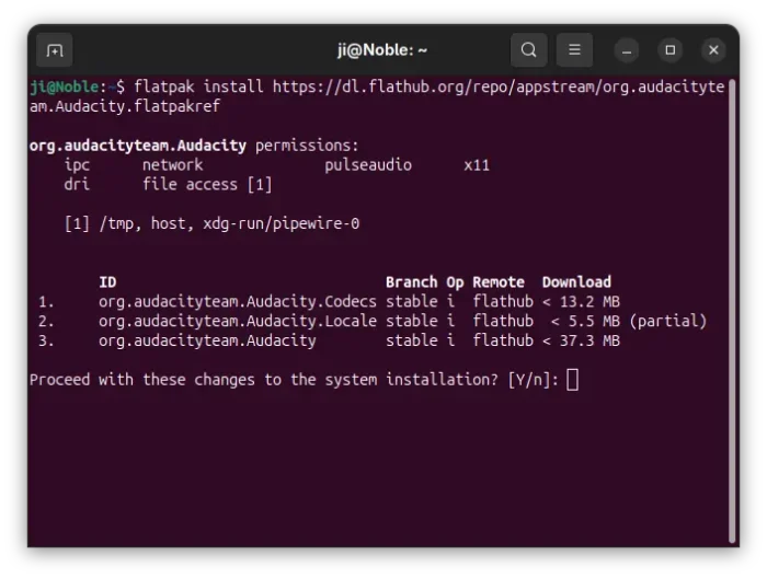flatpak install https://dl.flathub.org/repo/appstream/org.audacityteam.Audacity.flatpakref