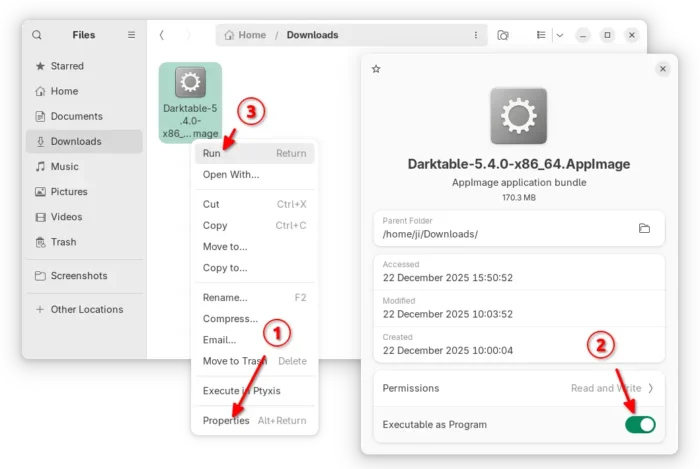 For Linux on AMD/Intel platform, select download the AppImage. Then, add executable permission from file properties. Finally, click Run to launch the software.