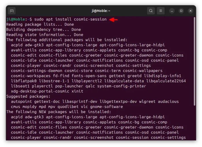 After successfully installed the desktop, restart your computer and select login with “COSMIC” session if you chose to use the previous login screen.
