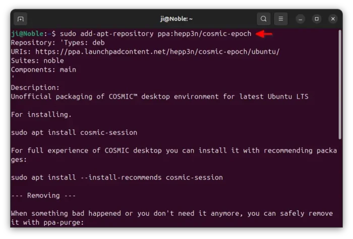 sudo add-apt-repository ppa:hepp3n/cosmic-epoch