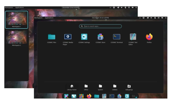 COSMIC is a new standalone desktop environment built from scratch. It’s the default desktop environment for Pop!_OS, developed by System76, an American Linux computer manufacturer.