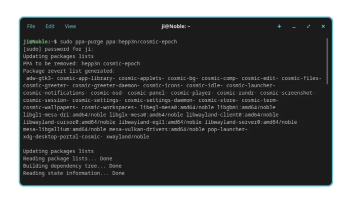 sudo ppa-purge ppa:hepp3n/cosmic-epoch