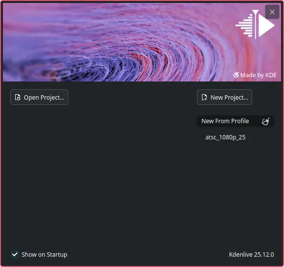 The new version of this KDE’s software added a welcome dialog at app start, allowing to open or create new project, or create new from a profile.