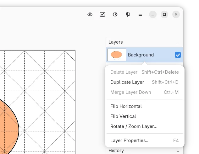 It also added context menu support for layers. Meaning, user can now right-click on a layer to get a pop-up menu with options to duplicate, merge, delete, flip, rotate or zoom layer or open layer properties dialog.
