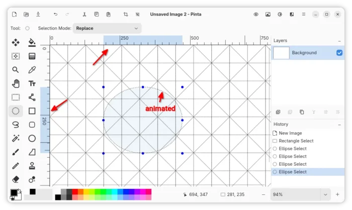 And, the outline dots of selection are animated to improve the visibility.