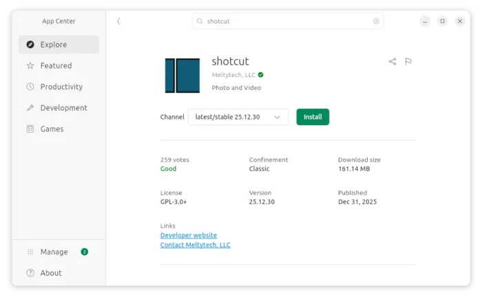 Option 2: Ubuntu users may simply search and install the Snap package from App Center (or Ubuntu Software for 22.04 and earlier).