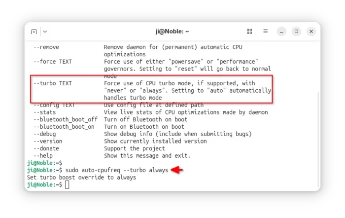 sudo auto-cpufreq --turbo always