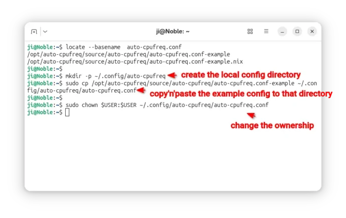 sudo cp /opt/auto-cpufreq/source/auto-cpufreq/auto-cpufreq.conf-example ~/.config/auto-cpufreq/auto-cpufreq.conf