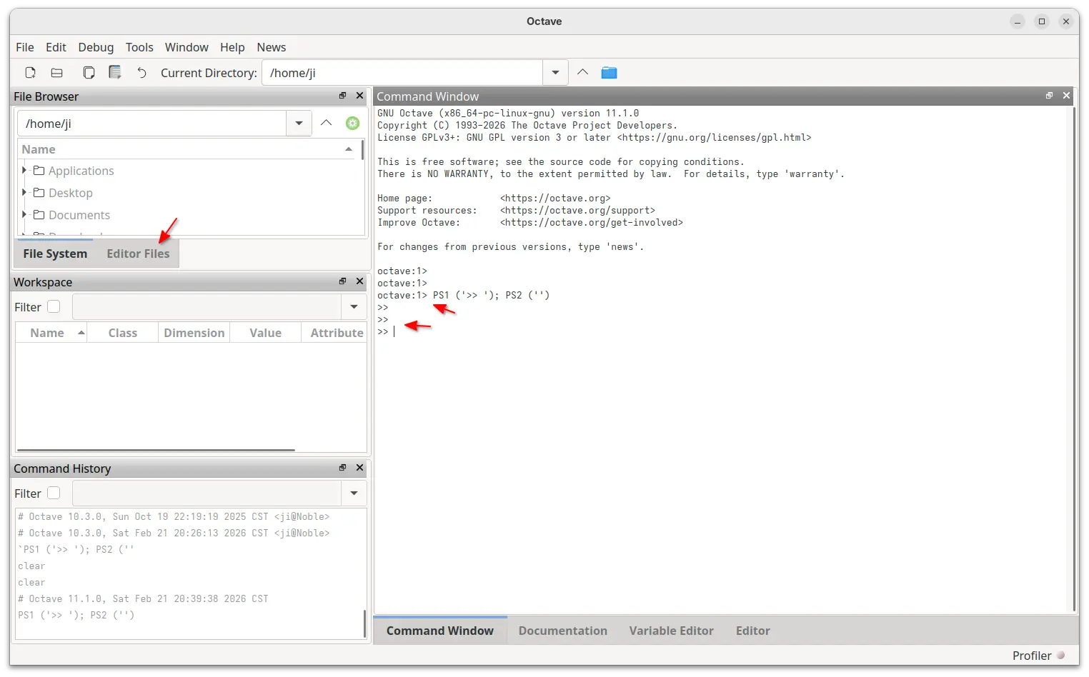 First, the new version updated the user interface with new Editor Files tab for the built-in File Browser, option to toggle start-up splash screen, and option for using the directory of the currently focused editor file instead of the current Octave directory as the initial folder for the Open File dialog.