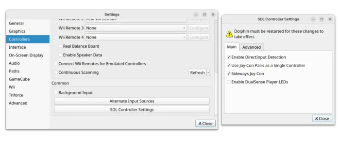 It as well added new SDL Controller settings, allowing to change how Nintendo Switch Joy-Cons are handled, e.g., separate left and right Joy-Cons into two different controllers to emulate the Wii and Nunchuk, as well for average users to easily work around the 8BitDo/DS4/DS5 bugs by disabling SDL’s DirectInput support.