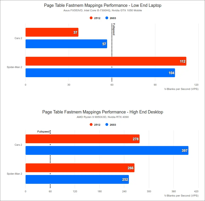Some games with custom memory handlers, like Spider-Man 2, actually lose a little bit of performance due to the overhead of tracking page table updates, but it has fewer traversal stutters so it feels more fluid in motion.
