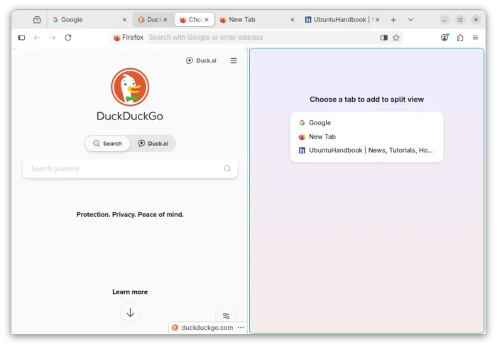 Like Chrome/Chromium, Firefox now supports split view that displays two web pages side-by-side in single window, making easy to compare information or work across two pages at once.