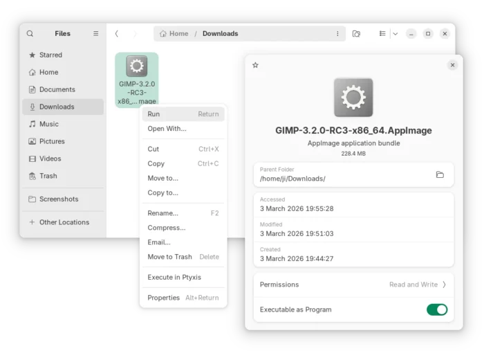 The Linux AppImage has been updated with fixes for AArch64 (ARM64) and third-party plugins support. And, Flatpak package now has initial Global Menu support by specifying GIMP_GTK_MENUBAR = 1 environment variable.