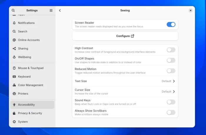 The screen reader Orca now uses GSettings, and existing settings will be migrated from JSON automatically. A new “Say All” option is added to only speak displayed text, making reading a long web page smoother. And, new option is added to read chat room messages from the active room when in any application.