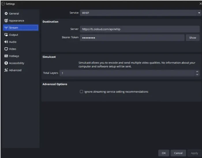 And, a new option is added in settings dialog allowing to set how many layers to send in total (so far support 1 ~ 4), when a WHIP service is selected.