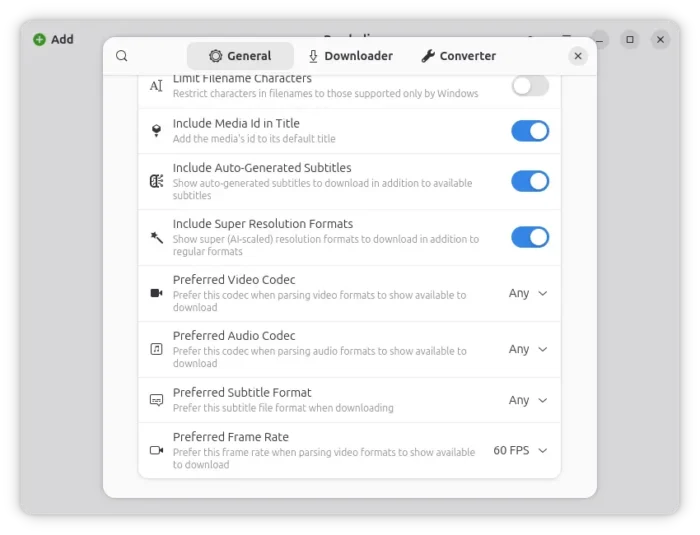 Besides new app packages, this version also added new preferences options to set your preferred frame rate (24, 30, or 60 FPS), and whether to show AI-scaled super resolution formats to download in additions to regular formats.