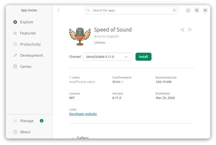 flatpak install https://dl.flathub.org/repo/appstream/io.speedofsound.SpeedOfSound.flatpakref