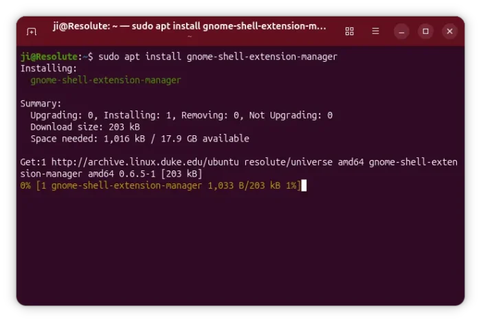 Extension Manager is one of the must-have applications to install & manage extensions in GNOME desktop. It can be installed by running the command below in terminal: