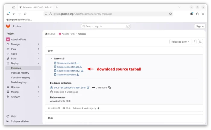First, download the source code of GNOME Adwaita Fonts from its project page via the link below: