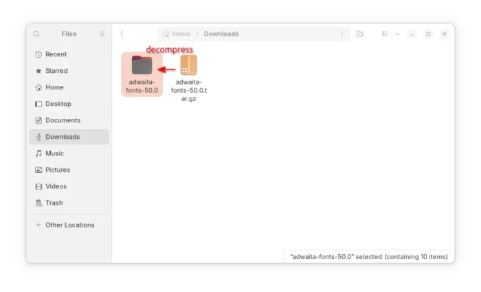 Then, open your Downloads folder and decompress the source tarball. In the extracted folder, you’ll see the font files (.ttf files) under mono and sans sub-folders.